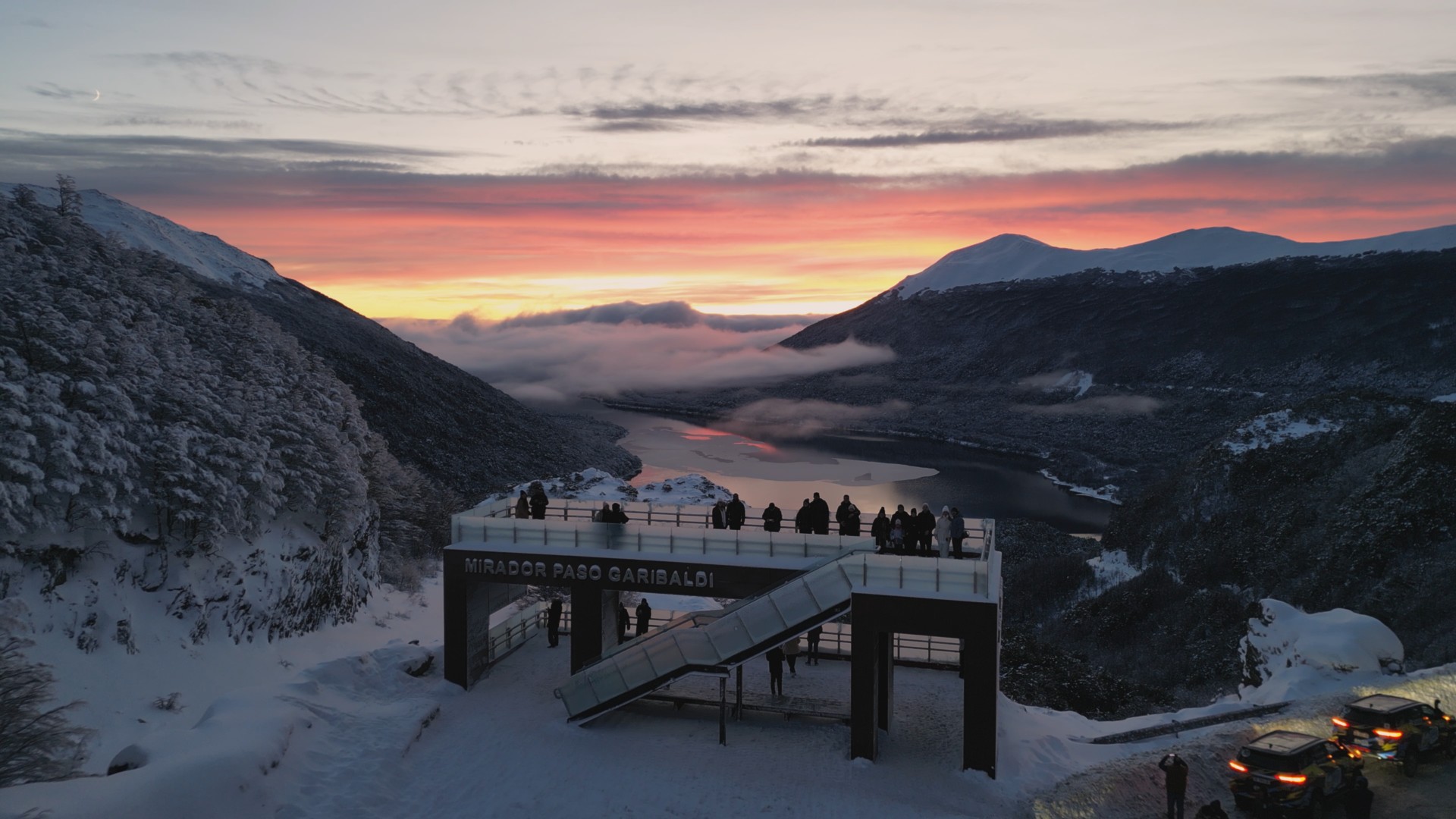 Our next stop is Paso Garibaldi, where we reach a panoramic viewpoint offering spectacular views of Lake Escondido and Lake Fagnano, stretching over 100 km toward Chile — an unforgettable experience from a comfortable and scenic lookout.
